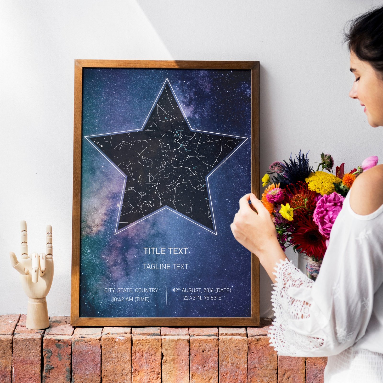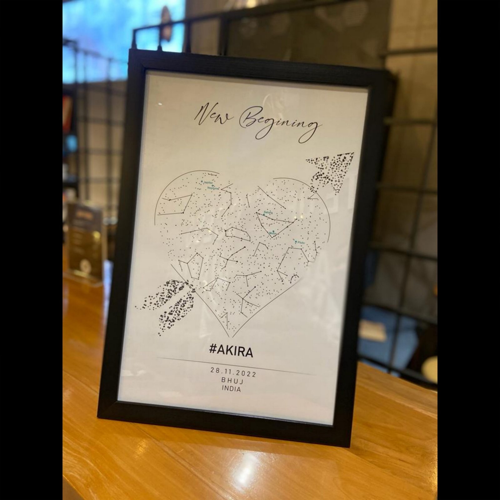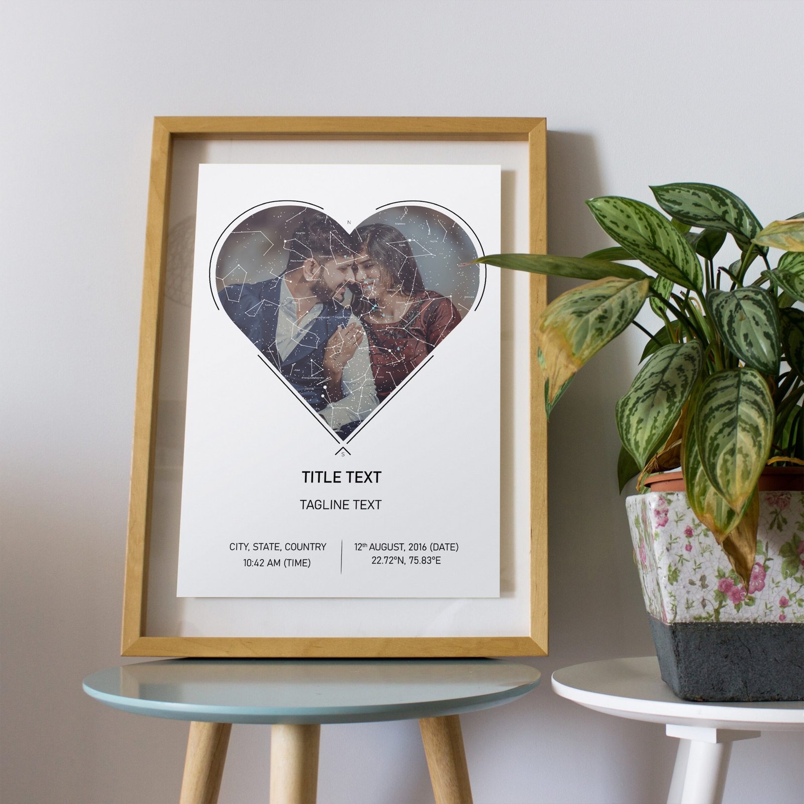 A Starmap is a unique artwork that shows the exact alignment of stars, planets, the moon, and the sun based on your special moment’s place, date, and time. We accurately map these celestial positions and create a personalized print that becomes a beautiful memento of occasions like first dates, weddings, birthdays, and anniversaries.