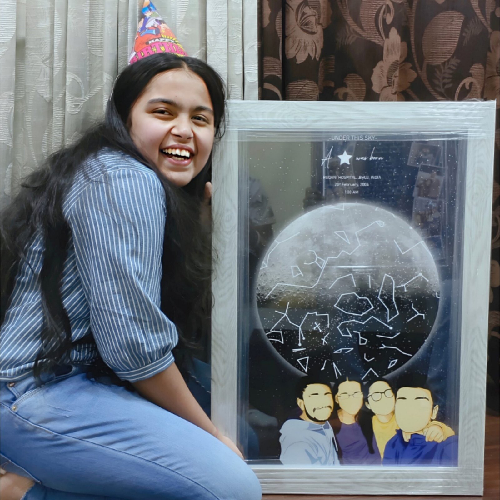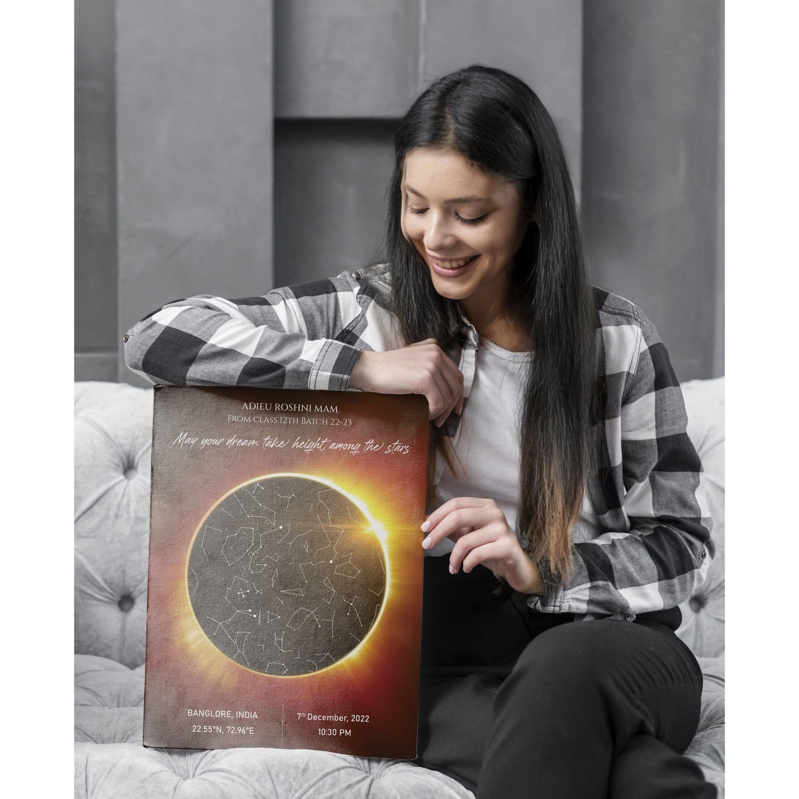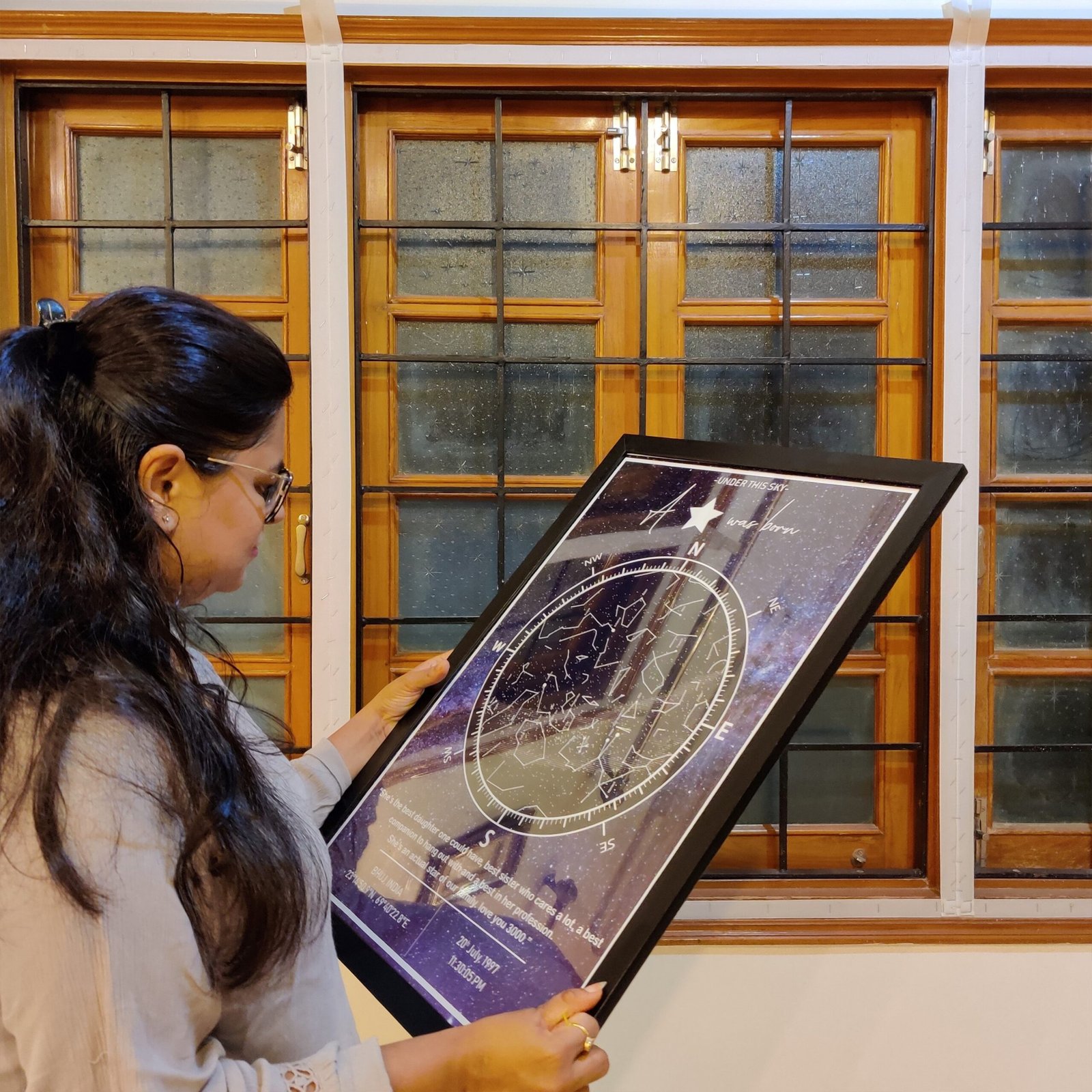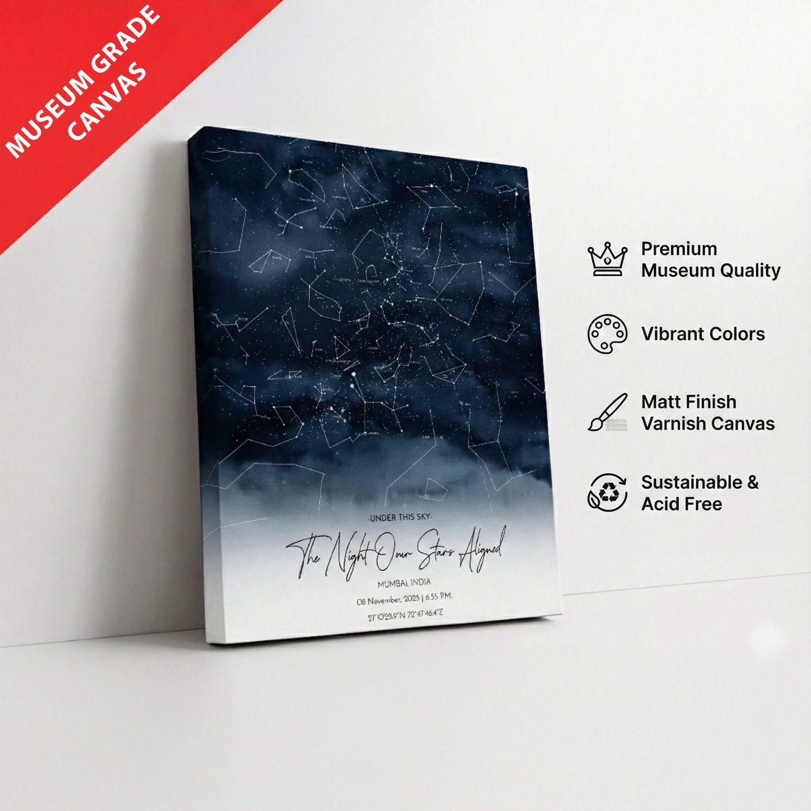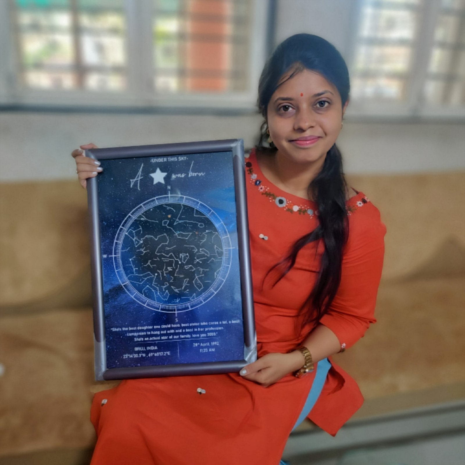 • Poster/Canvas is a printed form of Starmap on premium quality photo paper/Canvas cloth, which will be delivered to your location. That poster/canvas can be directly used for framing.